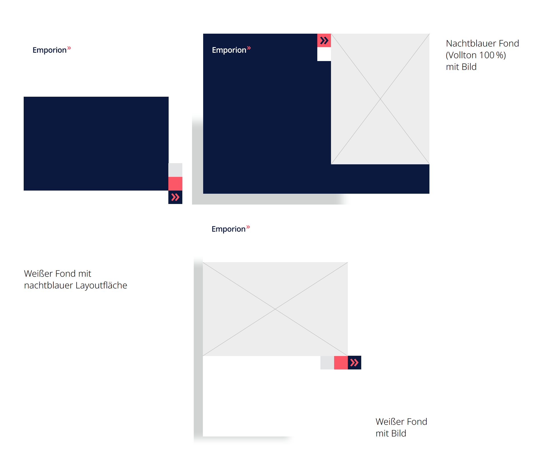 Das Emporion-Logo wird in allen Standard- Anwendungen immer mit Wort-Bild-Marke verwendet. Der Aufbau sowie die Proportionen der Elemente zueinander sind fest definiert und dürfen nicht verändert werden.