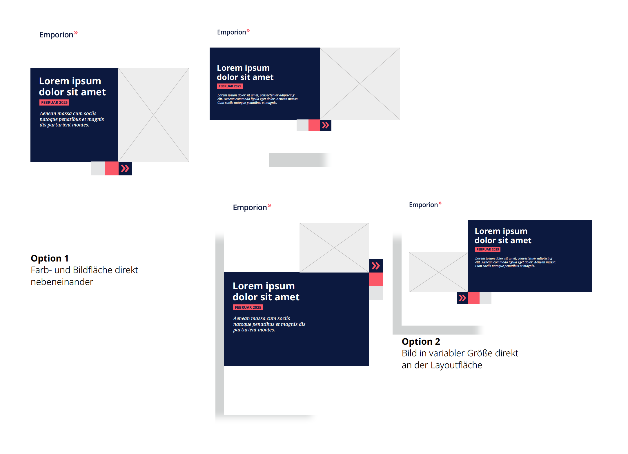 In manchen Fällen kann auch ein Bild zusätzlich neben eine nachtblauen Layoutfläche gesetzt werden. Hierbei bestehen zwei Layoutoptionen: